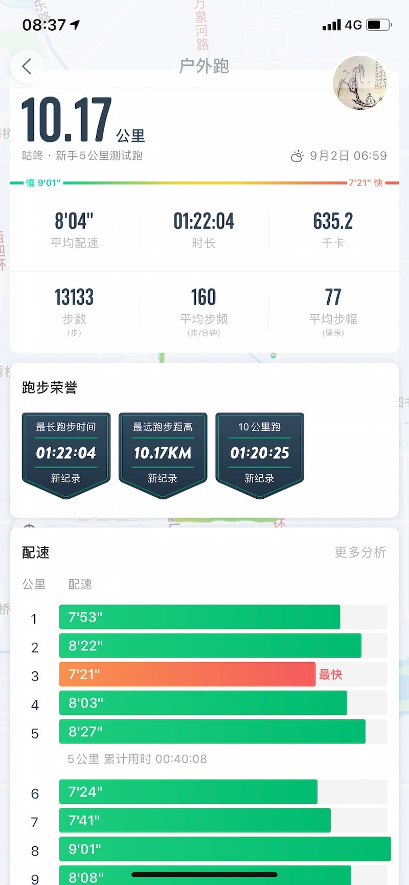 作为运动两个月的新手,有这样的成绩已经甚感欣慰了。